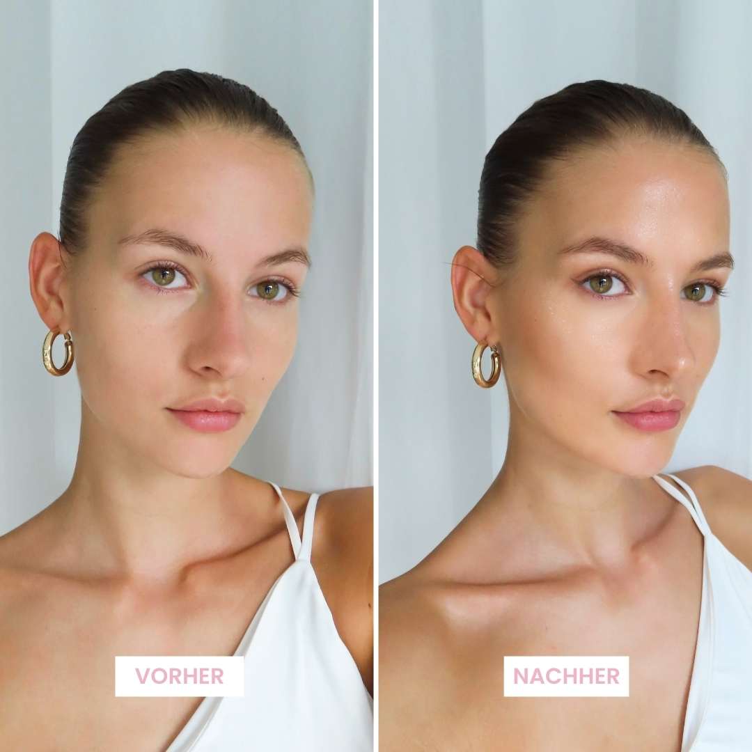 1–2 Tropfen reichen aus. Gleichmäßig auf Gesicht oder Dekolleté verteilen. Die Textur verschmilzt sanft mit der Haut und verleiht sofort einen natürlichen Glow.