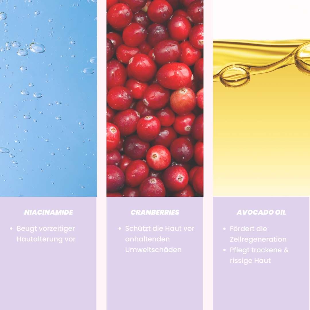 - Verfeinern das Hautbild sichtbar dank Niacinamid und pflegenden Pflanzenextrakten.