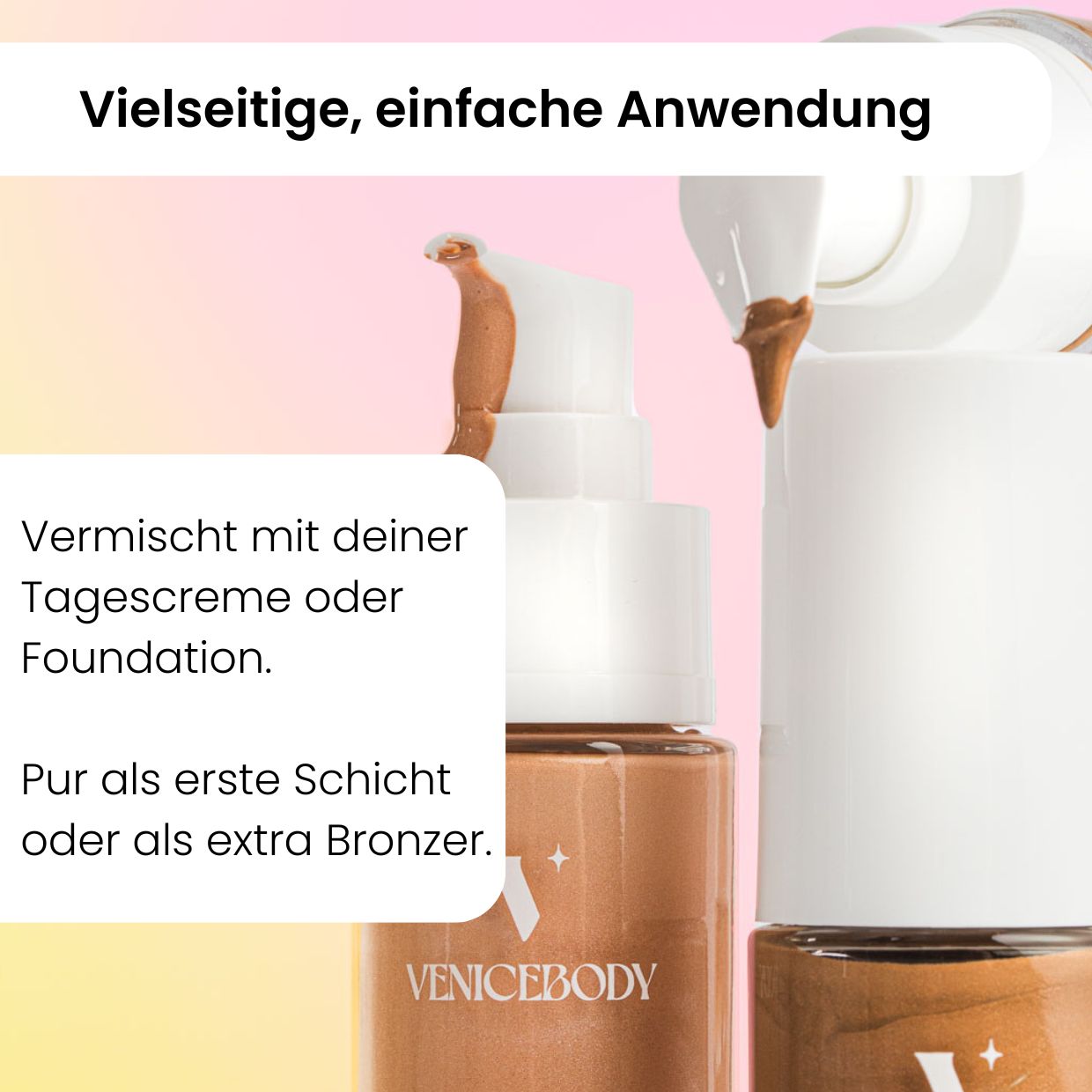 - Alternativ pur anwenden: als Primer, Highlighter oder Bronzer
